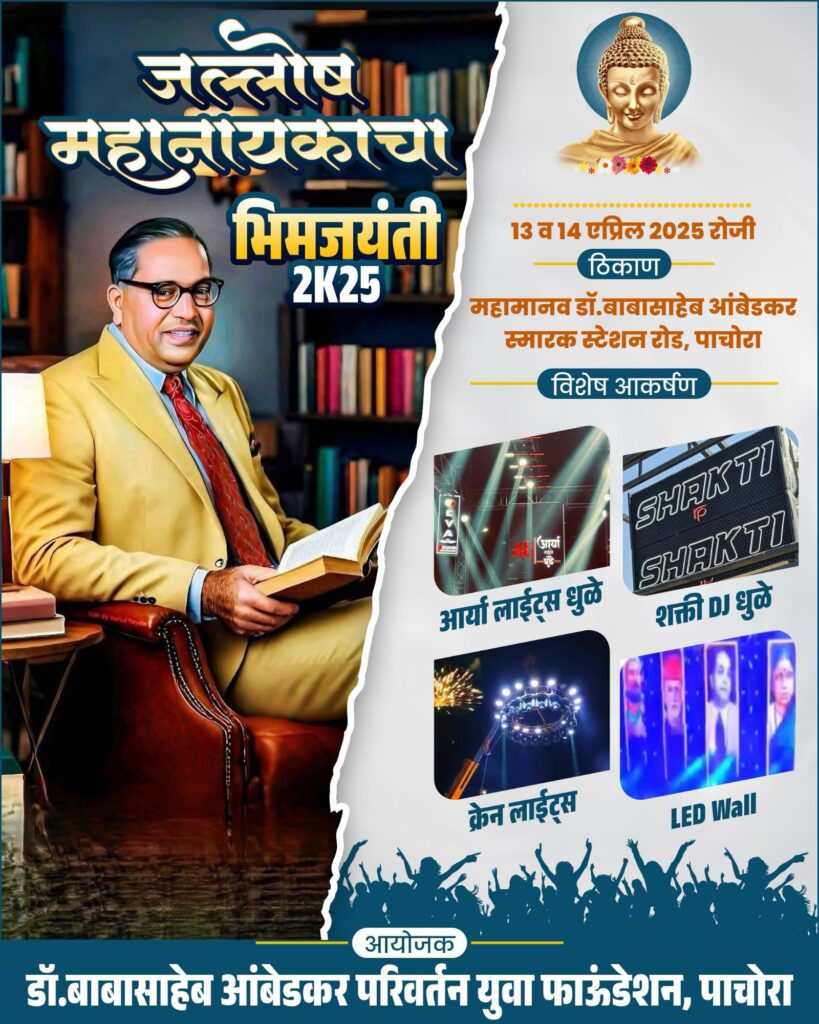 वर्षानुवर्षे डॉ. बाबासाहेब आंबेडकर परिवर्तन युवा फाउंडेशन यांच्या वतीने पाचोरा शहरात नवचैतन्याने पसरवले जात आहे. त्याच प्रेरणेने, यंदाही डॉ. बाबासाहेब आंबेडकर यांच्या १३४ व्या जयंतीनिमित्त पाचोऱ्यातील डॉ. बाबासाहेब आंबेडकर परिवर्तन युवा फाउंडेशन यांच्या वतीने एक आगळावेगळा, प्रेरणादायी आणि समतेचा उत्सव आयोजित करण्यात आला आहे. हा उत्सव १३ आणि १४ एप्रिल २०२५ रोजी दरवर्षीप्रमाणेच मोठ्या उत्साहात आणि जल्लोषात साजरा होणार असून, केवळ आंबेडकरी समाजाच्या वर्गणीच्या माध्यमातून संपूर्ण आयोजन करण्यात आले आहे.