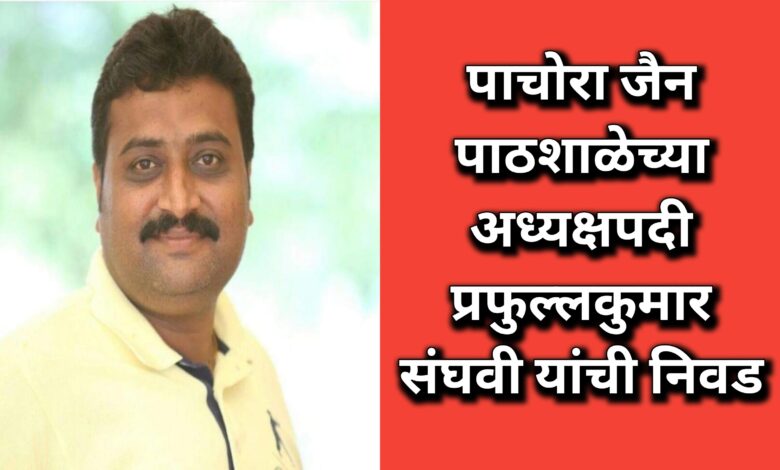 पाचोरा जैन पाठशाळेच्या अध्यक्षपदी प्रफुल्लकुमार संघवी यांची सर्वानुमते निवड;सर्वत्र अभिनंदन