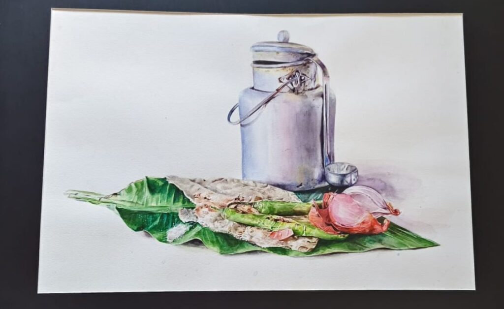 तसेच द्वितीय वर्षातील भूमी मनोज पाटील या विद्यार्थिनीने बरणी, केळीचे पान, कांदा भाकरी या माध्यमातून शेतकरी जीवनावर आधारित ऑब्जेक्ट ड्रॉइंग केले आहे. दिशा शिवकुमार ठाकूर या विद्यार्थिनीने महिलेचा शृंगार या विषयावर रचनाचित्र आणि बाजार हा विषय घेऊन स्मरणचित्र रेखाटले आहे, तिच्या या दोन्ही चित्रांची निवड झाली आहे. अश्विन कुमार नानाभाई कुवर या विद्यार्थ्याने ब्लॅक पेन माध्यमात चहाची बरणी व सफरचंद यांचे स्टिपलिंग पद्धतीने रेखाटन केले आहे.
