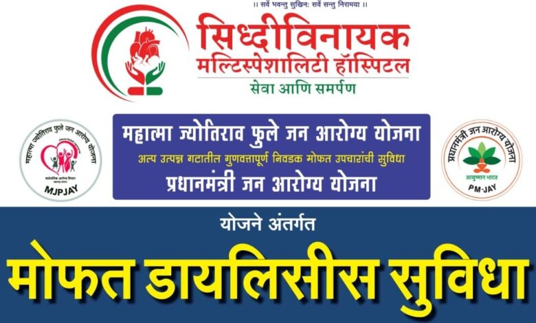 किडनी विकाराच्या रुग्णांसाठी सिद्धिविनायक मल्टीस्पेशालिटी हॉस्पिटलमध्ये म.फुले व पंतप्रधान जन आरोग्य योजनेअंतर्गत मोफत डायलिसिस सुविधेची सुरुवात.