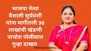 भाजपा नेत्या वैशाली सुर्यवंशी यांना मागीतली 30 लाखांची खंडणी पाचोरा पोलीसात गुन्हा दाखल..